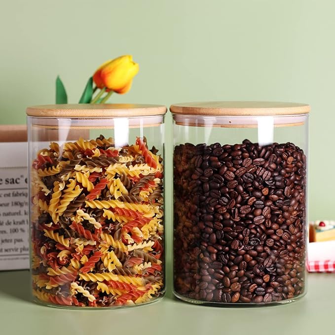 - [Keep Fresh] The large glass jar's lid equip a rubber ring, which can let the glass food container tight and keep products fresh. You can put in your pantry for pastas, dried fruits, and nuts.