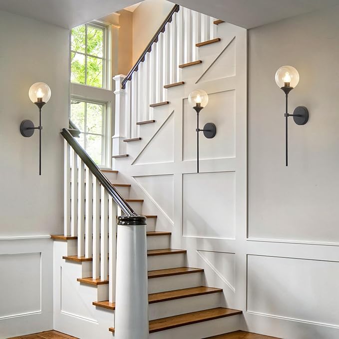 - Super Easy Assembly: Hardwired. With the US standard mounting gold plate, an installation kit, and a manual. The amber glass globe wall sconce can be installed easily. this matte black wall sconce includes all mounting hardware and step by step instructions for a quick and simple installation