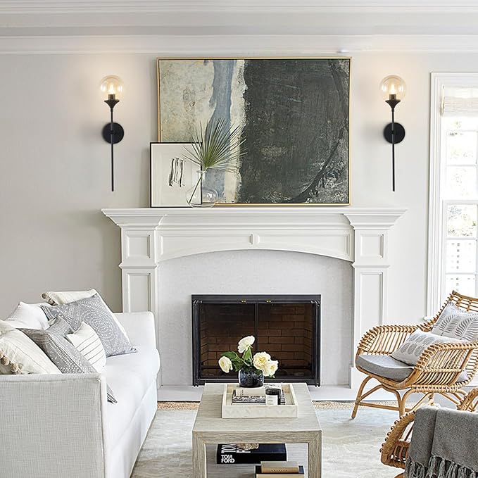 - Large Wall Light Dimension: The modern wall lights for living room height: 23.2”(59cm), width: 8.2”(21cm), globe diameter: 5.9”(15cm)(Globe replacement ASIN: B08P34WH72), canopy: 4.7”(12cm). Light source: E26(Bulb not included)(Bulb replacement ASIN: B081WVNCVM), voltage: 110-220V for worldwide