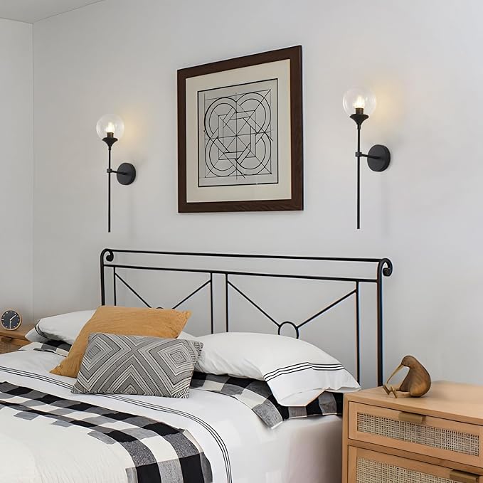 - Farmhouse Style: The black wall sconces features metal canopy in matte black finish, long column stand arm and one clear bubble glass lampshade. The vanity wall sconce lighting is a perfect mix of mid century and industrial in a beautiful matte black finish. Simple and elegant, features a antique farmhouse look and sends out a vintage feelings