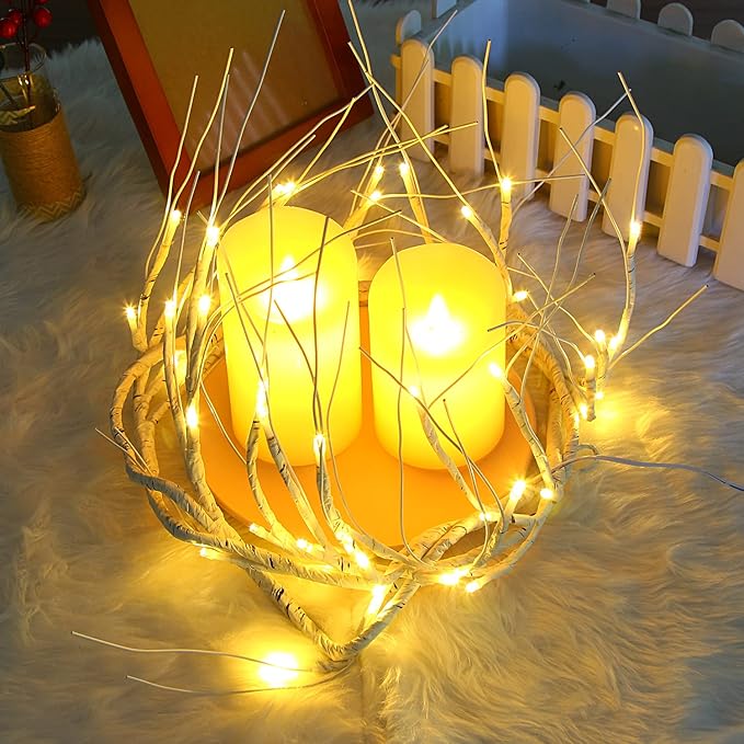 - Light strip:Invisible wire well hidden inside of the twig garland, suitable for night use.Rustic designed appeal, artificial but lifelike with birch bark texture covered. Similarly, turning off the lights during the day is also very beautiful.