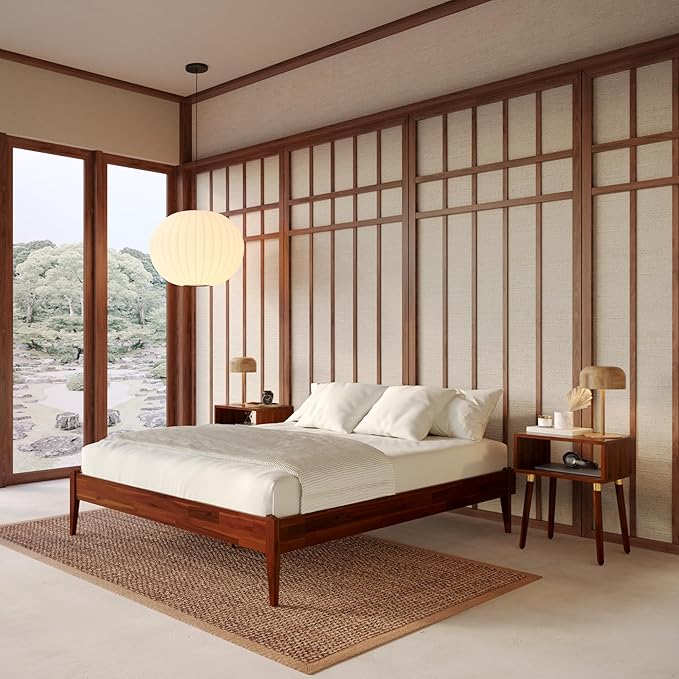 Bme Dinkee 15-Inch Solid Wood Queen Platform Bed Frame - Japanese Joinery, Minimalist Style - Wood Slats, Easy Assembly, No Box Spring Needed - Chocolate