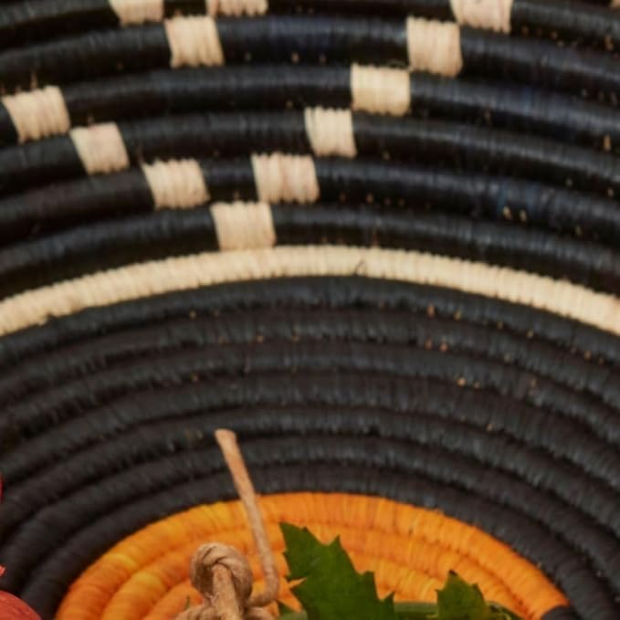 - HANDCRAFTED QUALITY: Intricately woven pattern featuring orange and natural raffia fibers creates a stunning geometric design that adds artistic flair to any space. This bowl is produced by an artisan co-operative in Uganda