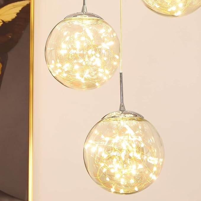 - ★ Staircase chandelier size: Up to 78 inches/200 centimeters of suspension wire, with adjustable length that can be shortened to the ceiling. Pendant base diameter: 15.7 inches/40cm, glass ball diameter: 6 inches/15cm. Applicable area: 10-15 square meters The pendant lamp does not support dimming, and the fixed color temperature of the light source is 4000K.