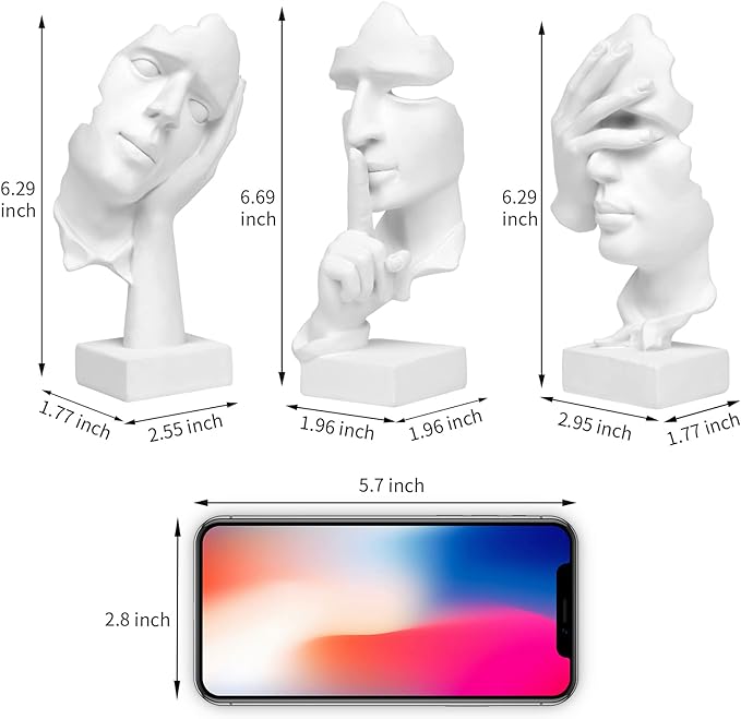 3 Pcs Thinker Statue, Silence is Gold Abstract Art Figurine, No Hear No See No Speak Modern Home Resin Sculptures Decorative Objects Decor for Home Office Bookshelf Desktop(White), A-41