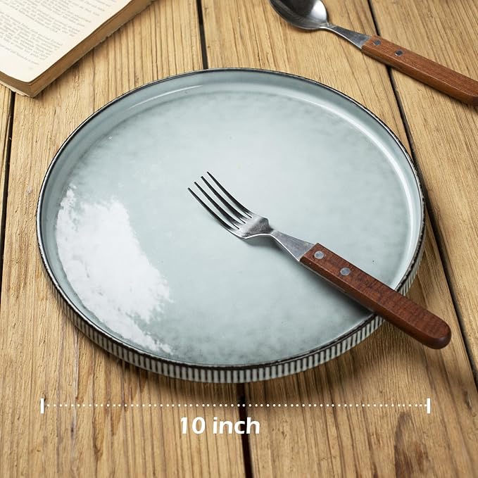 famiware Star Dinner Plates for 6, 10 inches Plate Set, Scratch Resistant, Stoneware Dinnerware, Kitchen Modern Rustic Serving Dishes, Smoky Blue