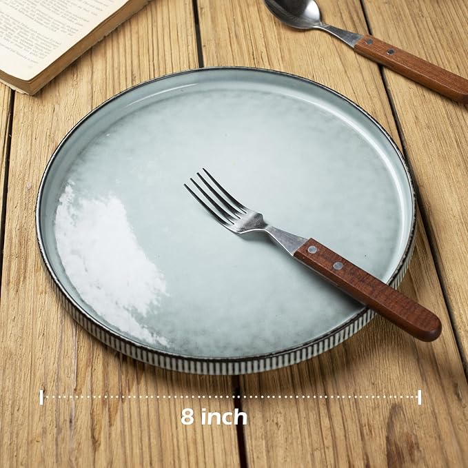 Famiware Star Salad Plates for 6, 8 inches Plate Set, Stoneware Dinnerware, Small Dinner Plates for Dessert, Salad, Appetizer, Smoky Blue