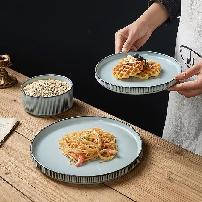 - Stackable: Appreciating the vertical-edge design, we've also addressed the stacking dilemma. Our dinnerware features grooves on the underside for easy, stable stacking