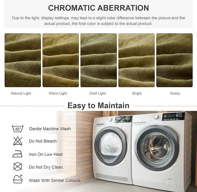 - Thoughtful Details: 4 inner corner straps and hidden button closure ensure a secure fit to prevent the filling from bunching up. The linen bedding set comes with 2 extra spare buttons, no need to worry about unexpected inconvenience.