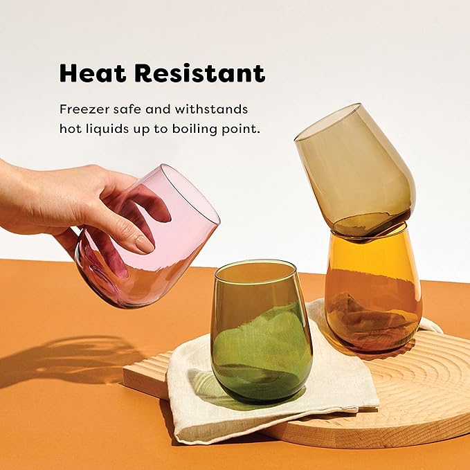 - Bring your vino down to earth. Our stemless option lets you sip without the precious or precarious effects of glass and stems, for an experience that’s super accessible, whether you’re an oenophile or a “rosé all day” type.
