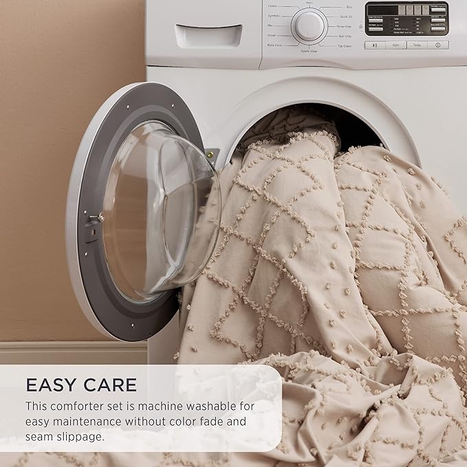 - Boho Design: Inspired by a chic boho palette accented with elegant embroidered tufts, this comforter set adds a touch of exquisiteness and sophistication to your sleeping space.