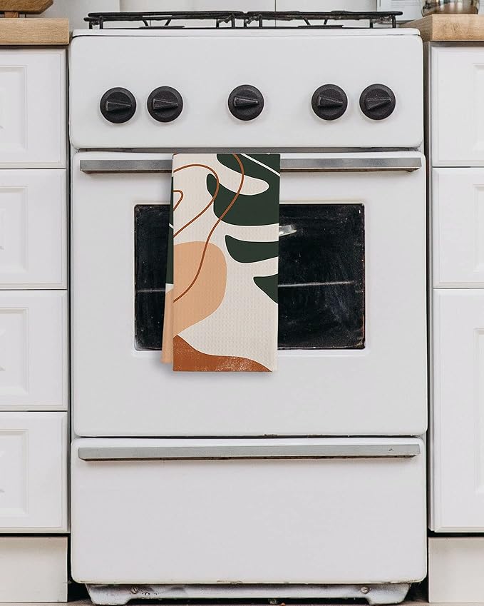 QIYUHOY Abstract Random Shapes Palm Leaf Kitchen Towels Tea Towels 16x24 Cotton Dish Towels for Farmhouse Decor