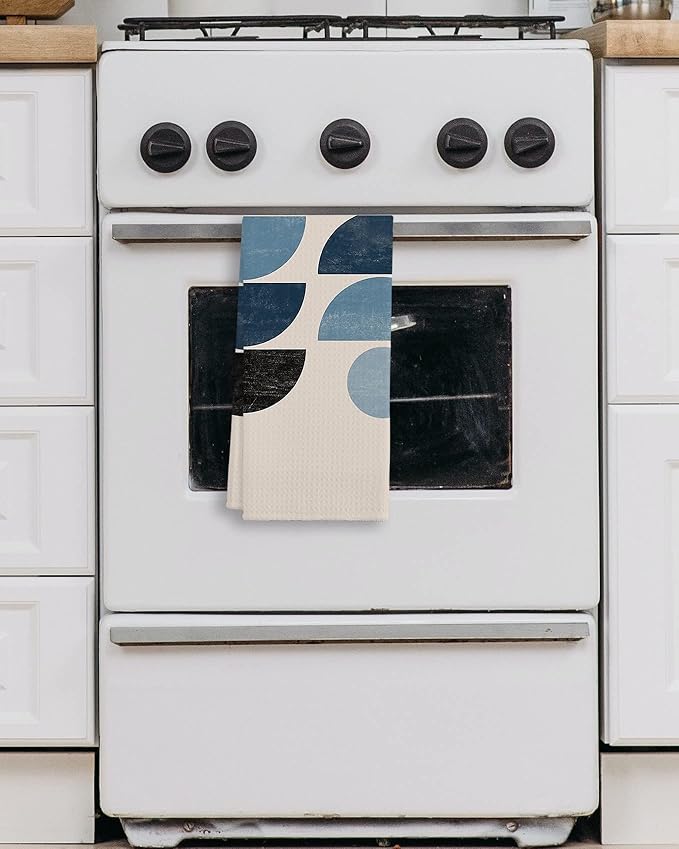 Blue Navy Retro Scandinavian Mid Century Modern Kitchen Towels Tea Towels Cotton Dish Towels