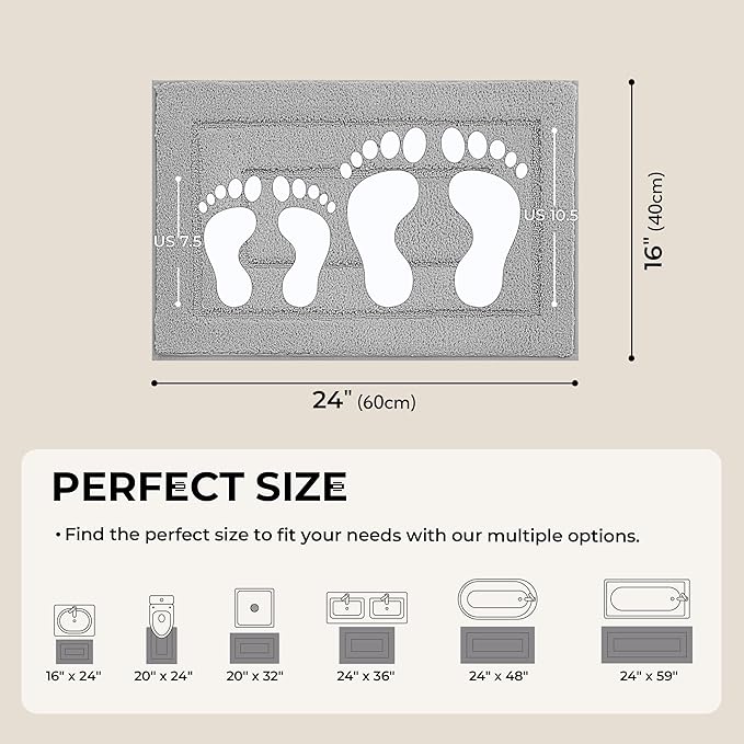 GRANNY SAYS Gray Bathroom Rugs, Bath Mats for Bathroom Non-Slip, Super Soft and Water Absorbent, Microfiber Bath Rugs, Machine Wash Dry, Bath Rugs for Floor, Tub and Shower, 16" x 24"