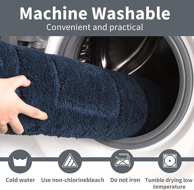 - Machine Washable - Machine wash the bathroom floor mat with cold water and mild detergent. Make sure the dryer is on low heat setting when tumble dry and keep away from chlorine and bleach. After professional testing, the color will remain vibrant after many washes.