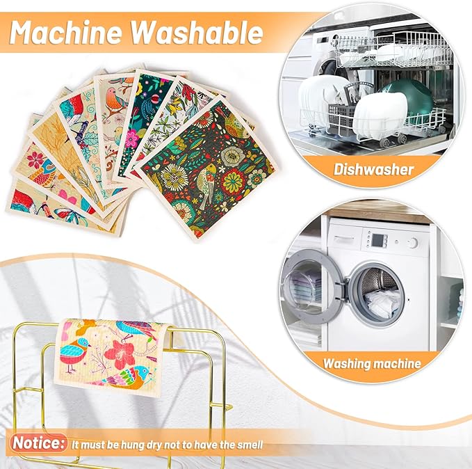 - 𝐂𝐥𝐞𝐚𝐧 𝐄𝐚𝐬𝐢𝐥𝐲 𝐚𝐧𝐝 𝐖𝐚𝐬𝐡𝐚𝐛𝐥𝐞 The dish cloths are machine washable and top rack dishwasher safe, just rinse clean, and they dry much faster thoroughly than cloth rags, when the cloth paper towels remain odor in-between trips, you can through the washing machine for the 40 seconds to sanitize. With proper care these dish towels can last up to few months, makes a unique zero waste gift.