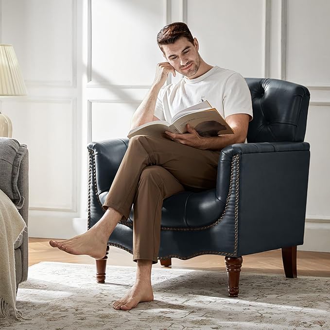 - Breathable Leather Construction- The leather accent chair Crafted with top-layer leather material. This genuine leather office chair combines scratch-resistant durability with easy-clean maintenance. Tufted leather chair can Ensure safe use for families with kids/pets.