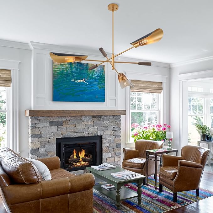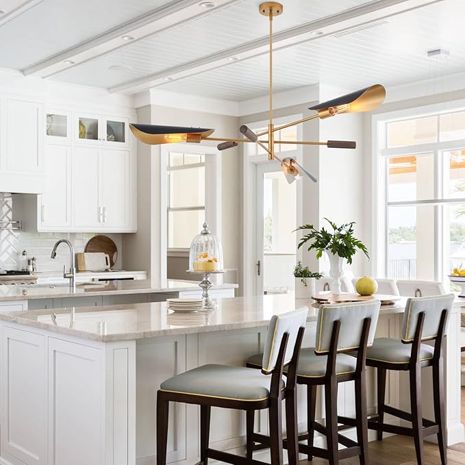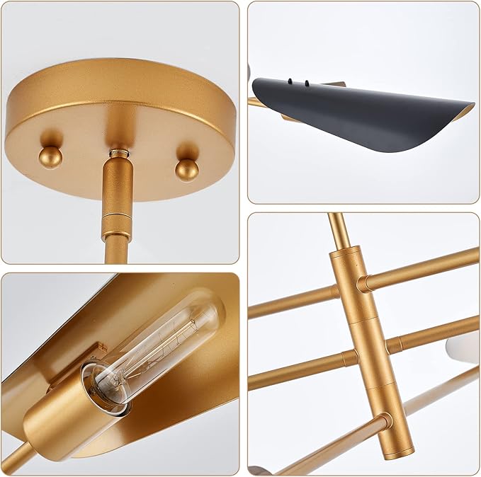 - Design Inspiration:This industrial pendant lighting is decorated with antique brass brush paint finish and matte black shade and solid wood cylinder, providing a vintage mid-century look.