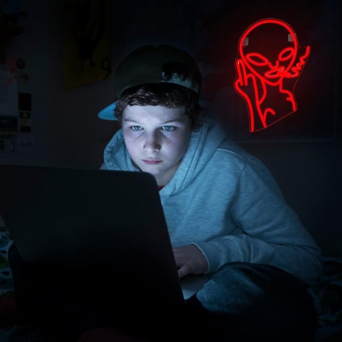 - Alien Bedroom Decor: Are you looking to add a little brightness and interesting thing to your room or office, the alien neon sign can deliver just the right amount of luminosity and add fun atmosphere.
