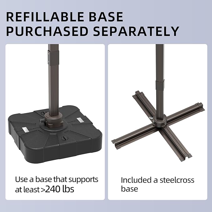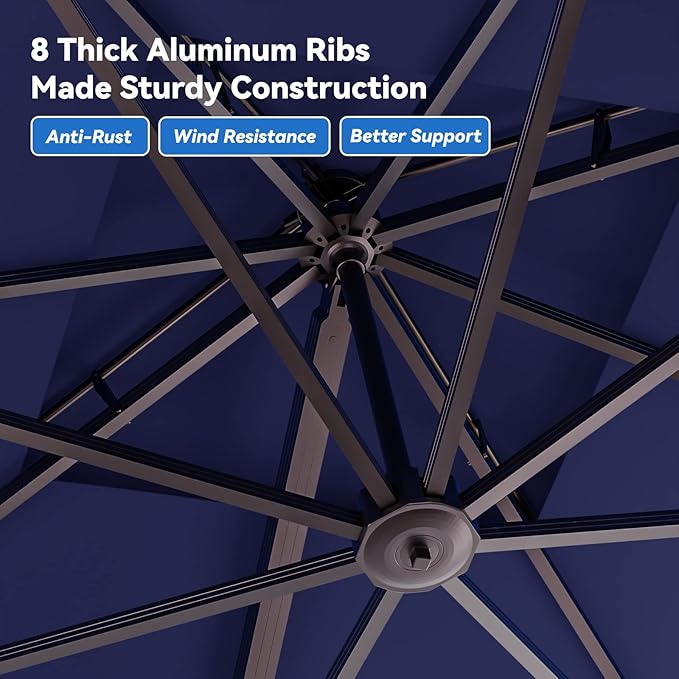 - Double Top Design: The 10*13ft rectangle cantilever umbrellas are made of upgraded high quality 240/gsm yarn-dyed polyester fabric with PU coating. It has excellent water-repellent and fadeless. The double top vent design allows the circulation of air to promotes airflow while adding stability.