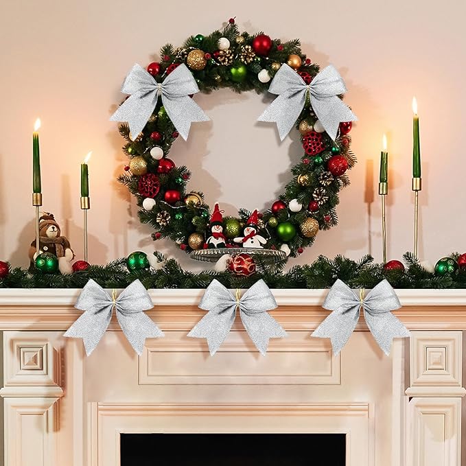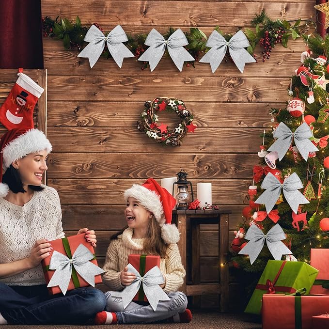 - Quality Material: the silver Christmas bows for wreaths is made of quality materials, which is reliable, not easy to fade, light weight, reusable, good shape, and not easy to deform; You can decorate it anywhere you want to, adding charm and eye catching embellishment to your Christmas decorations