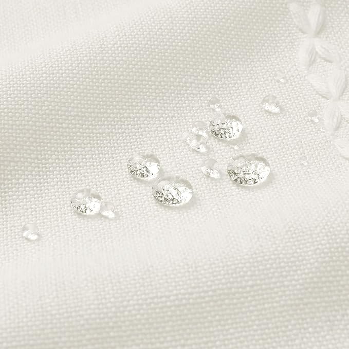 - Wrinkle Free & Ultra Thick Fabric - 310 GSM, 15% linen, 85% polyester creates farmhouse like effect for this white shower curtain, so that it could keep in place. The quality curtain is elegant and soft, which can deliver a rustic or country-like bathroom environment.