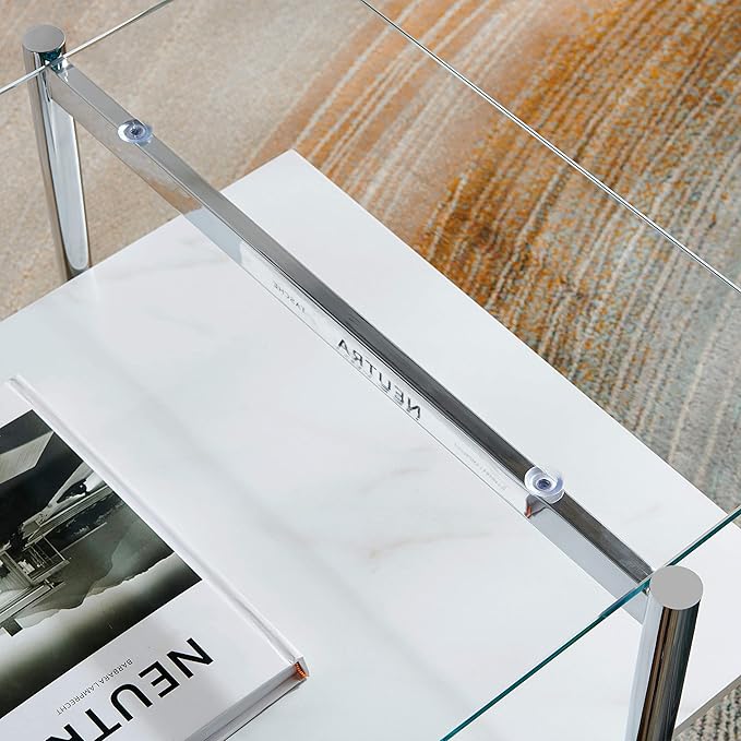 - High-quality Materials: A clear glass tabletop, a white marble finished wooden shelf, and a steel frame with a stunning gold finish, make this coffee table not only sturdy and durable but also elegant and stylish. The steel frame provides excellent stability while the clear glass top and white marble finished wooden shelf add a touch of sophistication and luxury to your living space.