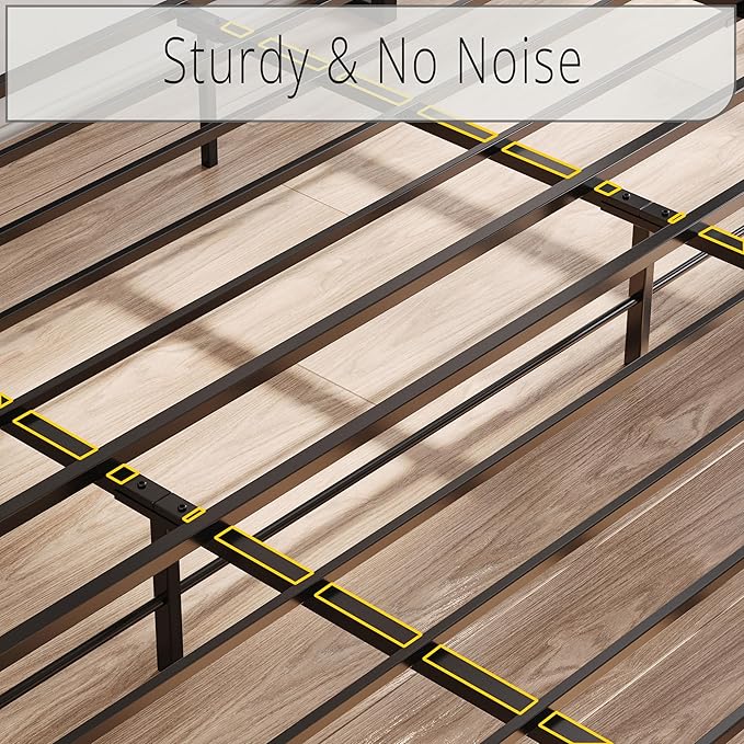 - Sturdy and Stable: Heavy-duty metal slats reinforce the sturdiness and durability of the platform king bed structure. Providing optimum support for all types of mattresses without the use of a box spring