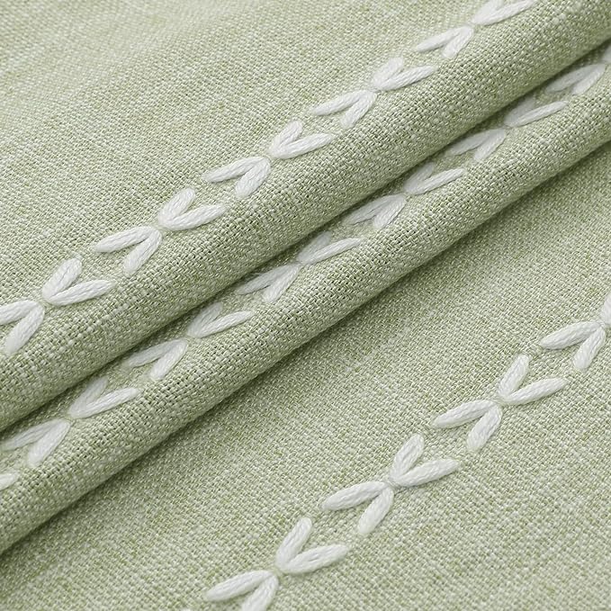 - Wrinkle Free & Ultra Thick Fabric - 310 GSM, 15% linen, 85% polyester creates farmhouse like effect for this Sage Green shower curtain, so that it could keep in place. The quality curtain is elegant and soft, which can deliver a rustic or country-like bathroom environment.