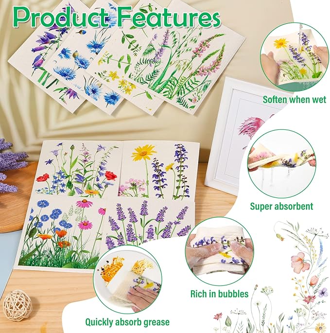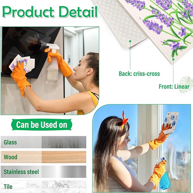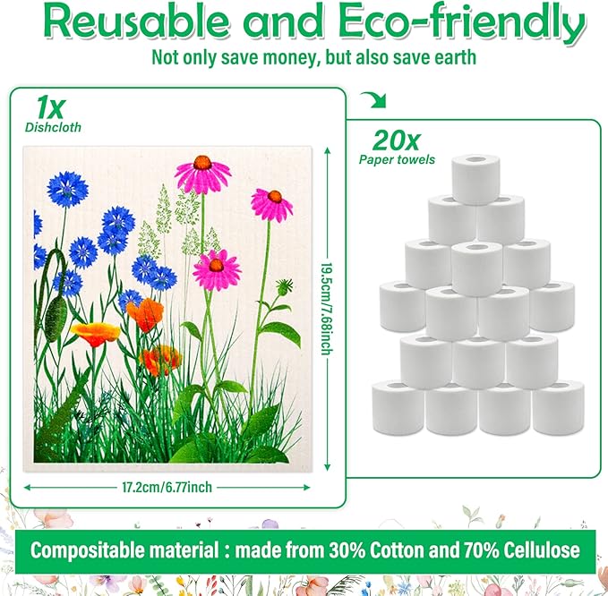 - 𝐑𝐞𝐮𝐬𝐚𝐛𝐥𝐞 𝐊𝐢𝐭𝐜𝐡𝐞𝐧 𝐃𝐢𝐬𝐡 𝐑𝐚𝐠𝐬 Made from Wood Pulp + Cotton, breathable and washable, these reusable cloths/ sponges/ towels soak up much more than a regular towel dishrag which will not leave streaks on the countertops, and they soak up stuff like flour much more easily than a traditional rag, great absorbance, soft smooth enough not to scratch surfaces but strong enough to get up grease and crumbs.