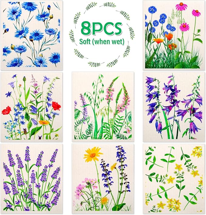- 𝐒𝐰𝐞𝐝𝐢𝐬𝐡 𝐃𝐢𝐬𝐡 𝐂𝐥𝐨𝐭𝐡𝐬 𝐒𝐞𝐭 Swedish Kitchen dish cloths include 8 green patterns, which are printed with leaves for distinguish various use and matching home décor. Each of kitchen towels is 20 x 18 cm/ 8 x 7 inches, maximize drawer space and use this to wipe our counters stove, clean up house spills and easy to throw in washing machine for quick disinfecting.