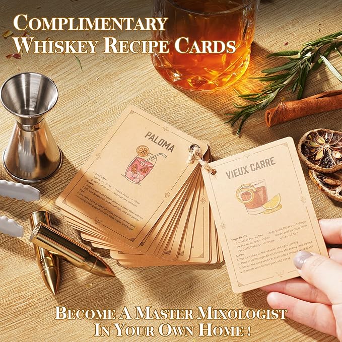 - 【 SPICE UP YOUR LOVE LIFE WITH OUR WHISKEY SET 】 - Romance is all about being there for each other! Enjoy your husband's favorite whisky together on special occasions and use the complimentary recipe card to create delicious cocktails at home. Our luxury whiskey stones and crystal whiskey glasses make the perfect decoration for your home bar or man cave.