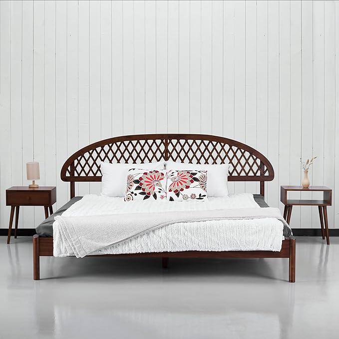 NTC Gem Wooden Bed Frame with Headboard, Crafted from Walnut, Rubber Wood with Silent Slats and Wood Central Supports, 1000 Lb Capacity, Effortless Assembly, King - Dark Walnut