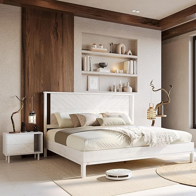 - EXCEPTIONAL CRAFTSMANSHIP: The king bed frame is sustainable acacia wood construction and undergoes a sanding process for making rustic wood bed frame finishes that make an impression with the tone of elegant white finish