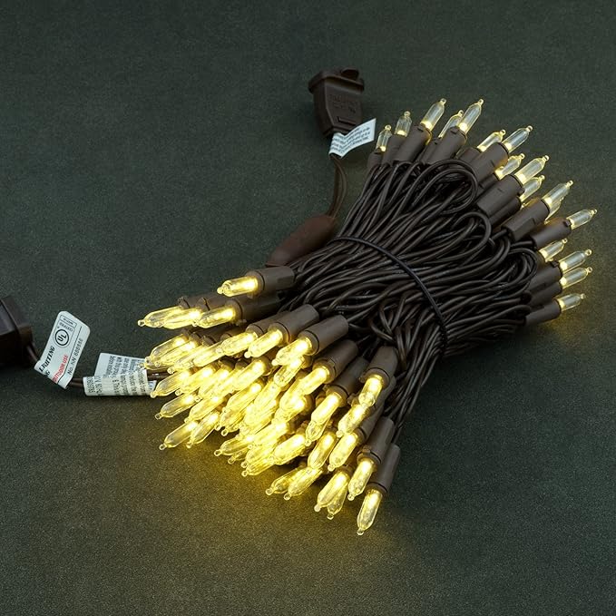 YULETIME Warm White LED Christmas Lights with Brown Wire, 33 ft 100 Count UL Certified Commercial Grade Holiday String Light Set (Warm White - Brown Wire)