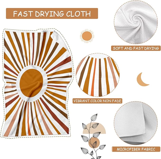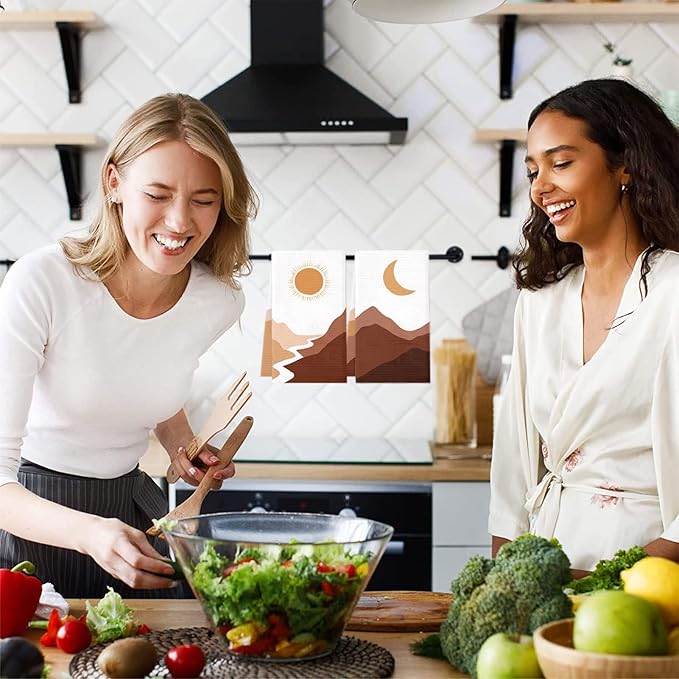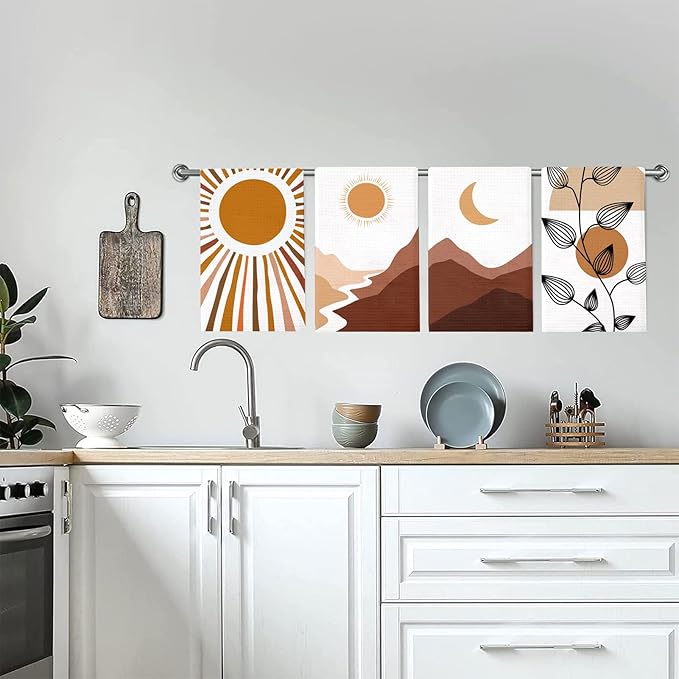 Boho Kitchen Dish Towels 4 Pack Mountains Rivers Sun and Moon Absorbent Tea Towels
