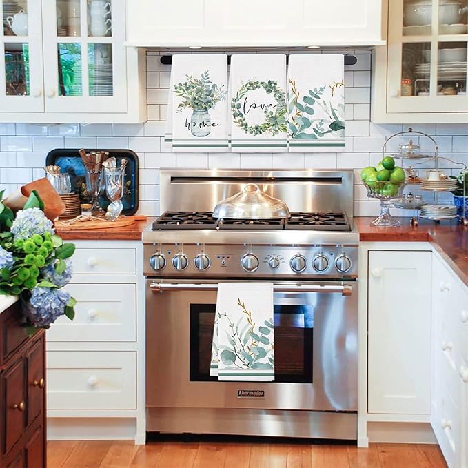 - Wide Application Range-- With these towels, you can do the hand drying, dry dishes or utensils, sop up a quick mess, clean counter tops, tables or windows. This eucalyptus leaves kitchen towel can be hung on the oven handle, countertop or towel rack, which is very suitable for kitchen, bathroom or home decoration.
