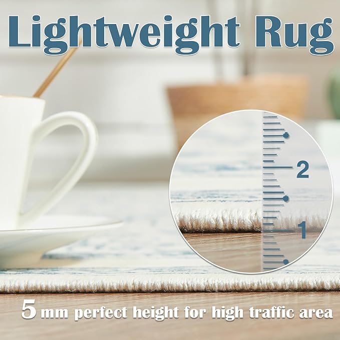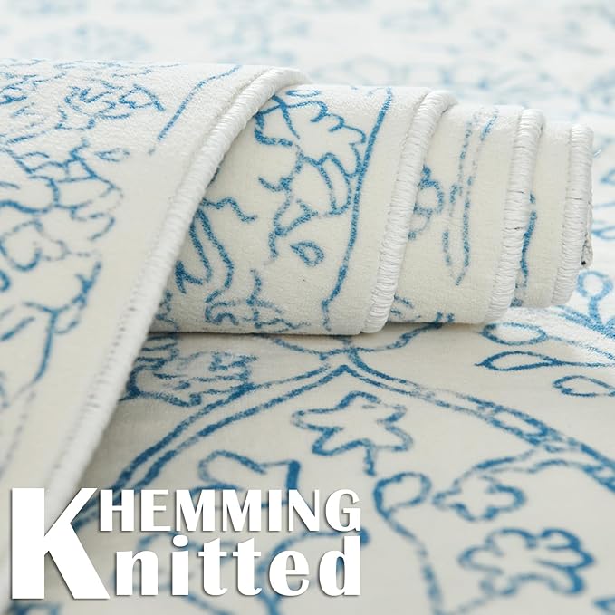 jinchan Vintage Floral Washable Area Rug 6x9 Distressed Faux Wool, Blue