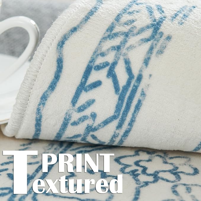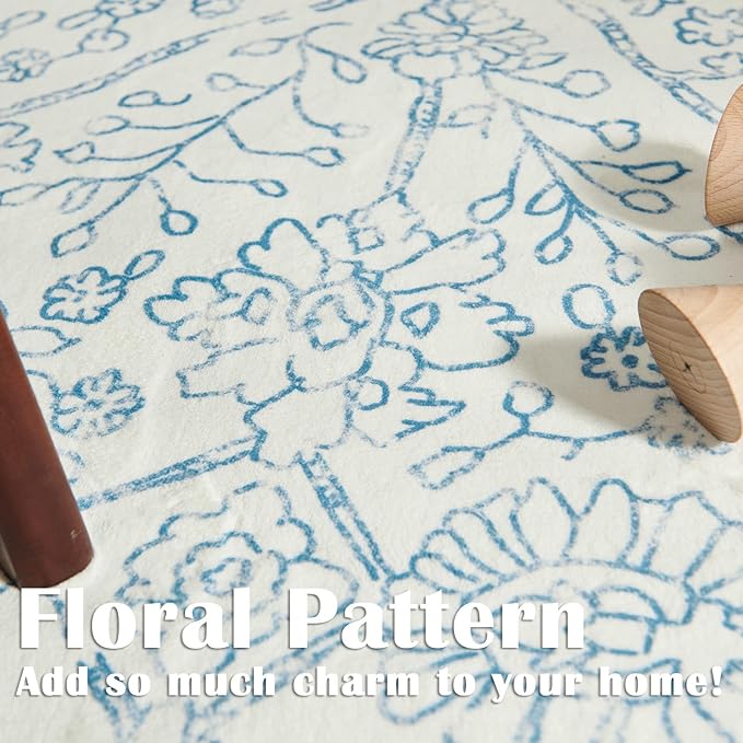 jinchan Vintage Floral Washable Area Rug 5x7 Faux Wool Distressed, Blue