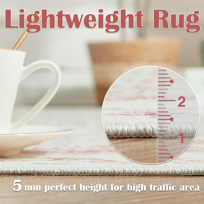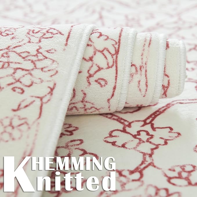 jinchan Vintage Floral Washable Area Rug 5x7 Distressed Faux Wool, Red