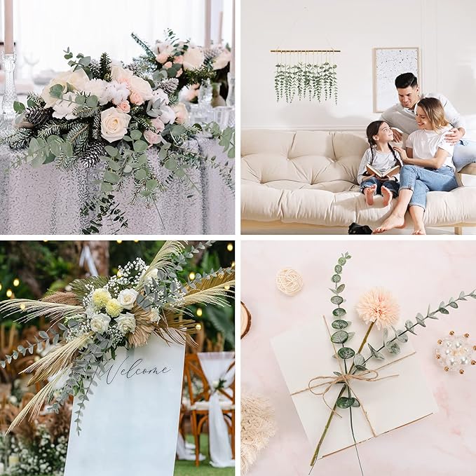 - 【Usage of eucalyptus stems bulk】 You can freely choose the eucalyptus stems bulk to mix with other floral bouquets. They are perfect decorations for wedding photo backdrop, wedding centerpieces, bridesmaids bouquets, farmhouse floral arrangements, baby shower, Halloween, Christmas centerpiece.