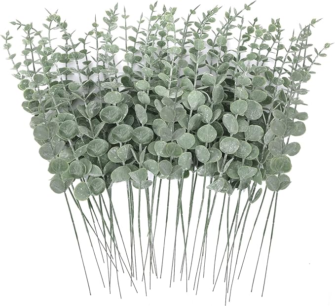 - 【Package Includes】80pcs gray green artificial eucalyptus stems.