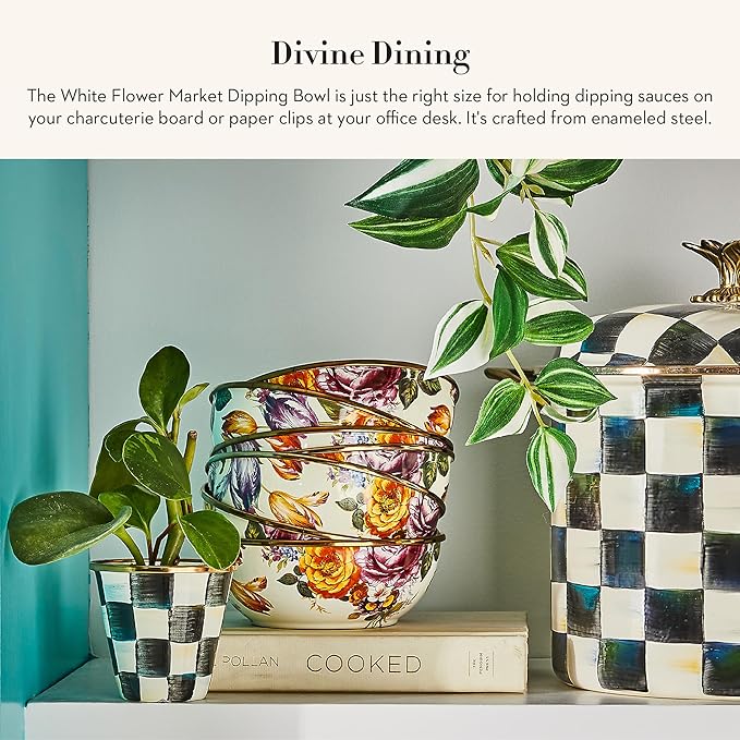 MACKENZIE-CHILDS Enamel Dipping Bowl, Small Serving Bowl for Entertaining, White Flower Market