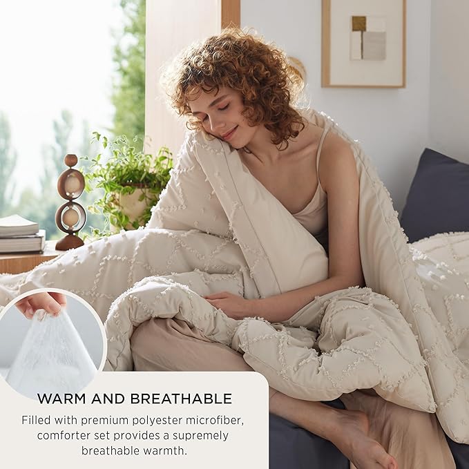 - Premium Filling: Filled with premium polyester, this boho comforter set provides a supremely fluffy hand-feel and breathable warmth, instantly transforming your bare dorm into a cloud-like sleeping space.