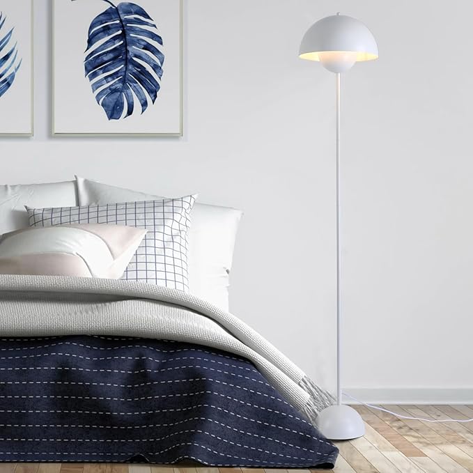 COSYLUX Modern Floor Lamp for Living Room, Industrial Tall Standing Lamp for Bedroom, Metal Shade Reflecting Light Reading Floor Lamp for Office, Nursery Room, Corner(Matte White)