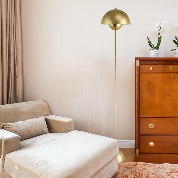 COSYLUX Modern Floor Lamp for Living Room, Industrial Tall Standing Lamp for Bedroom, Metal Shade Reflecting Light Reading Floor Lamp for Office, Nursery Room, Corner(Gold)
