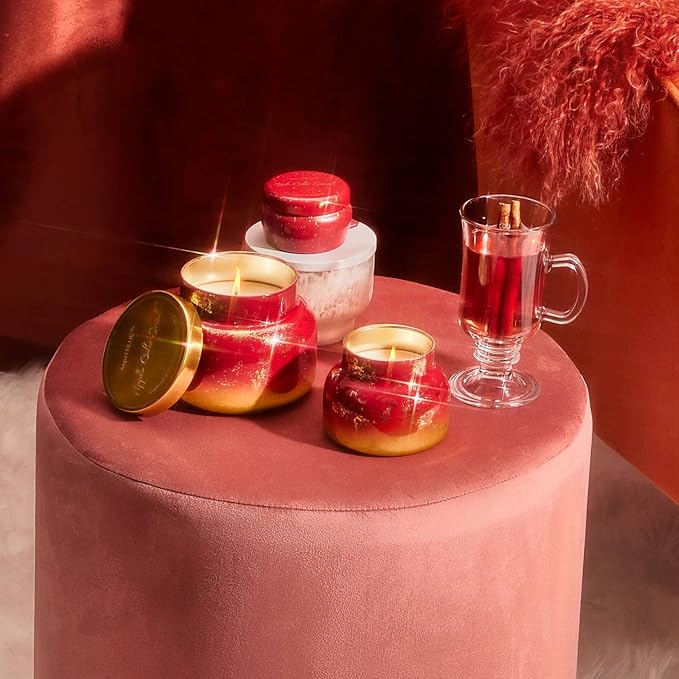 Capri Blue Glimmer Petite Signature Jar Candle - Apple Cider Social Scented Candle with Ombre Glass Candle - Luxury Aromatherapy Candle - Red and Gold (8 oz)
