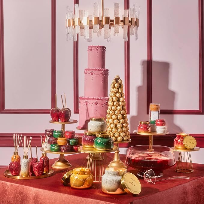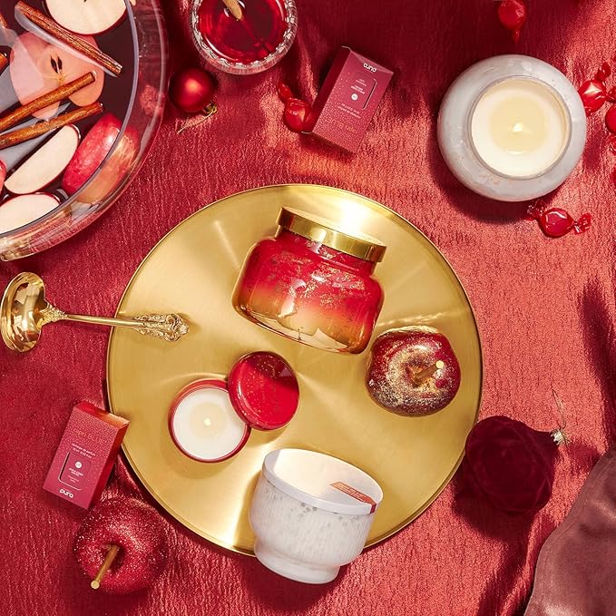 Capri Blue Scented Candles - Glimmer Collection - Ombre Glass Candle - Luxury Apple Candles for Women & Men - Signature Jar in Cranberry Red and Gold (Apple Cider Social, 19 oz)