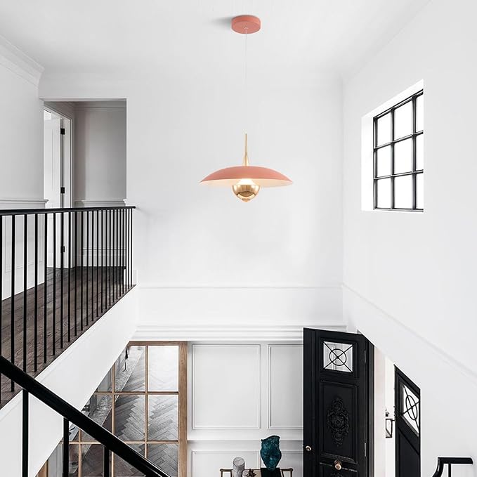 - 【Color Options】The metal pendant light is available in two color options - black and pink - allowing you to choose the one that best complements your interior design style. The black finish adds a touch of sophistication, while the pink finish brings warmth and luxury to your space