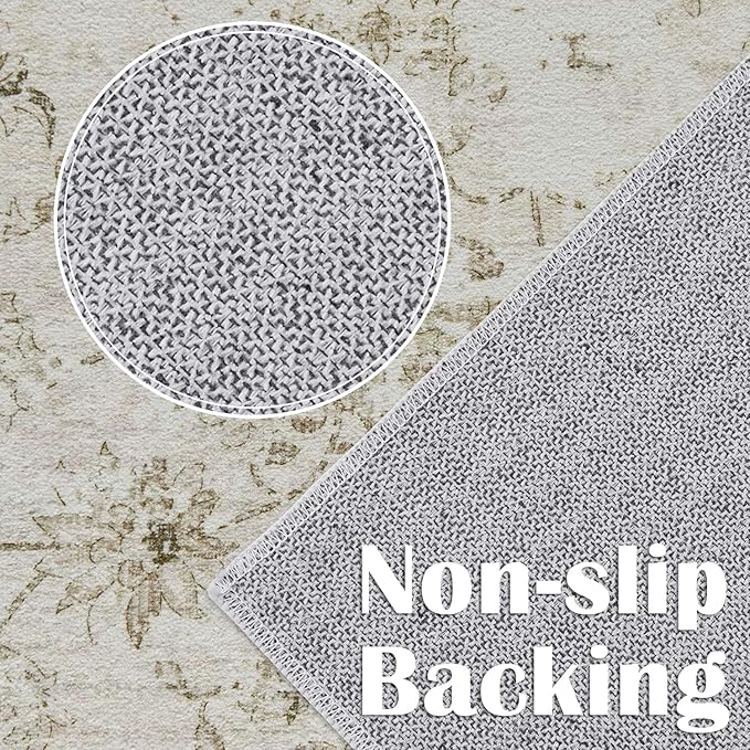 jinchan Vintage Floral Washable Area Rug 5x7 Non-Slip Medallion, Taupe